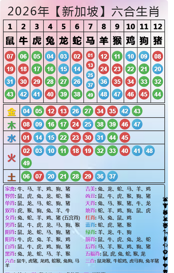 蓝肖-猴蛇虎猪 绿肖-牛羊龙狗 红肖-马兔鸡鼠